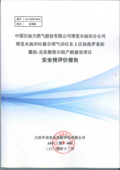 中國(guó)石油天然氣股份有限公司塔里木油田分公司塔里木油田吐格爾明氣田吐東2區(qū)塊侏羅系陽(yáng)霞組-克孜勒努爾組產(chǎn)能建設(shè)項(xiàng)目地面工程安全預(yù)評(píng)價(jià)報(bào)告 |