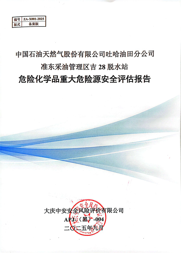 中國(guó)石油天然氣股份有限公司吐哈油田分公司準(zhǔn)東采油管理區(qū)吉28脫水站危險(xiǎn)化學(xué)品重大危險(xiǎn)源安全評(píng)估報(bào)告