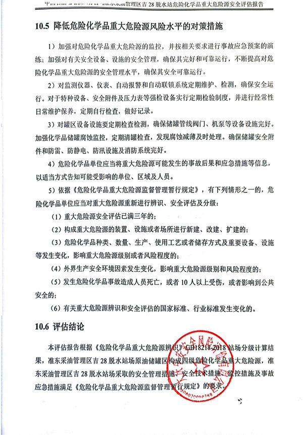 中國(guó)石油天然氣股份有限公司吐哈油田分公司準(zhǔn)東采油管理區(qū)吉28脫水站危險(xiǎn)化學(xué)品重大危險(xiǎn)源安全評(píng)估報(bào)告 |