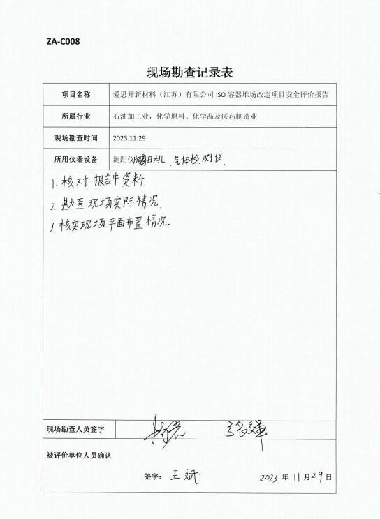 愛思開新材料(江蘇)有限公司ISO容器堆場改造項目安全評價報告 |