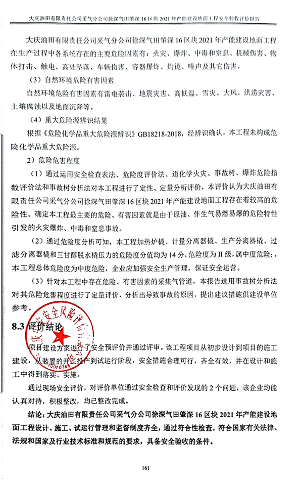 大慶油田有限責任公司采氣分公司徐深氣田肇深16區(qū)塊2021年產(chǎn)能建設地面工程安全驗收評價報告 |