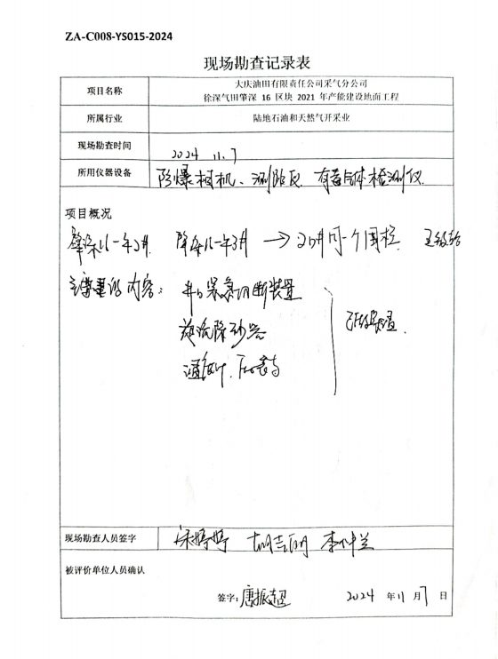 大慶油田有限責任公司采氣分公司徐深氣田肇深16區(qū)塊2021年產(chǎn)能建設地面工程安全驗收評價報告